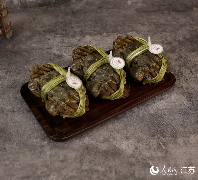Photo shows Gucheng Lake crabs with traceability tags. (People's Daily Online/Wang Dandan)