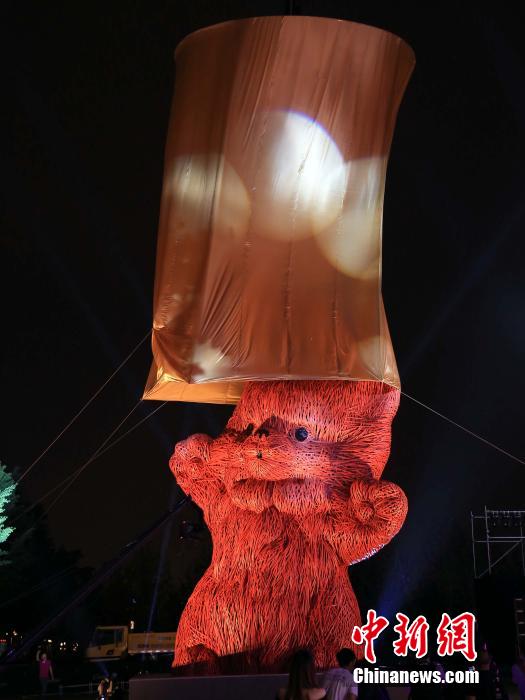 A giant pink cat, which is one of the latest creations from Holland designer Florentijn Hofman, is displayed in Shanghai, east China, May 30, 2014. Hofman is well-known for his creation "Giant Rubber Duck." (Photo Source: chinanews.com)