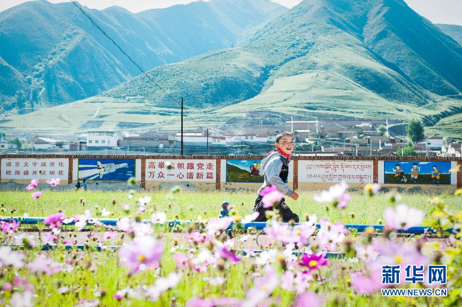 A boy plays at Jiujia Elementary School in Labrang town of Xiahe county, northwest China's Gansu province on Sept. 2, 2014. Jiujia Elementary School has 627 students; all of them are from Tibetan families. Teachers give classes in both Tibetan and Han languages. Besides having traditional classes such as mathematics and English, students can select a "dream class," which teaches Tibetan Guozhuang Dance and innovative paintings. (Xinhua News Agency/Li Mangmang)