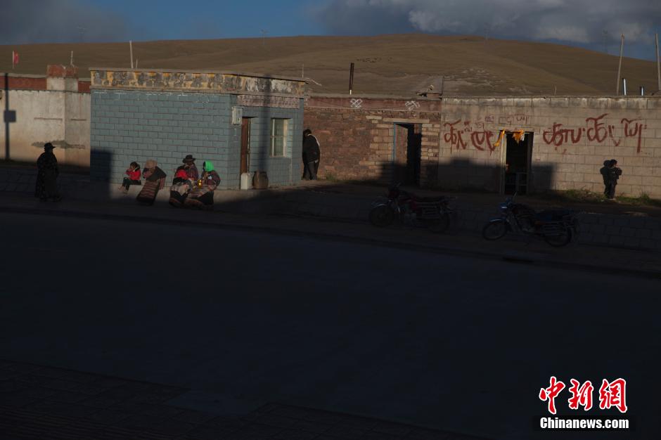 Local people chat with each other in the sunset in Anduo County, southwest China's Tibet Autonomous Region, Sept. 27, 2014. (Chinanews.com/Liu Guanguan)