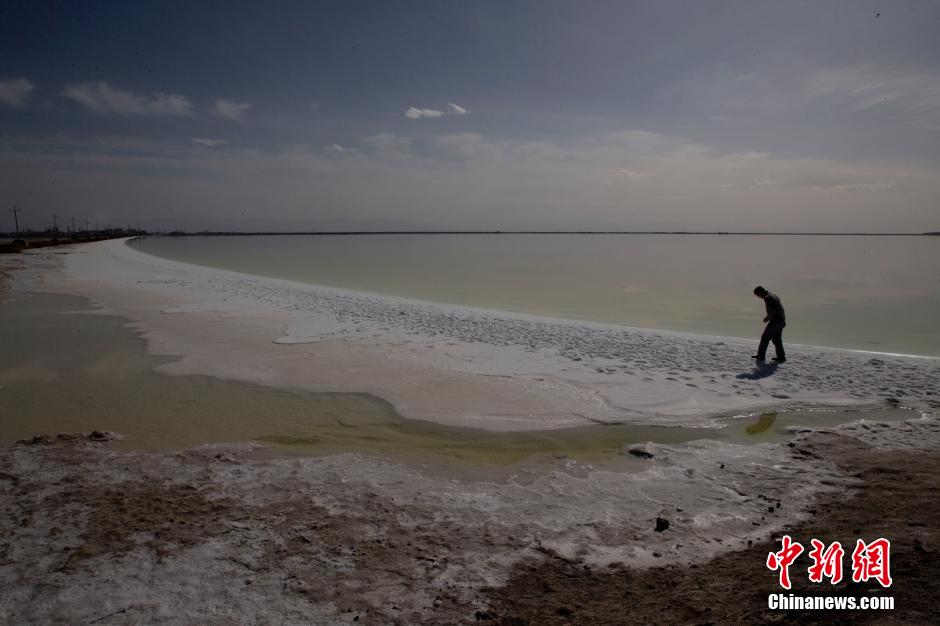 A tourist walks by the Qarhan Salt Lake in Golmud, northwest China's Qinghai Province, Sept. 25, 2014. (Chinanews.com/Liu Guanguan)