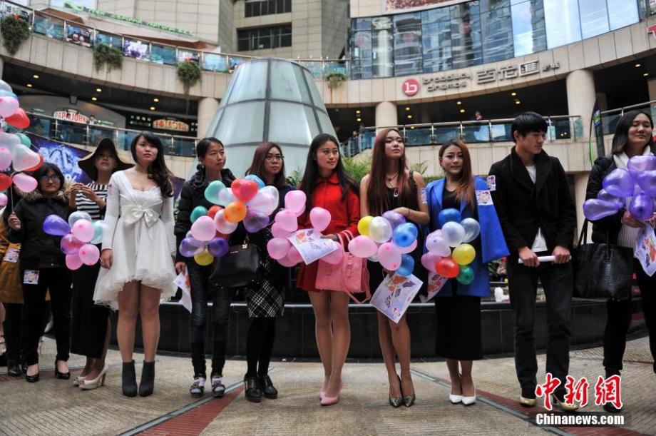 A high-heels running race is held on the Valentine's Day in a shopping mall in Kunming, capital of southwest China's Yunnan province. (CNS/Ren Dong)