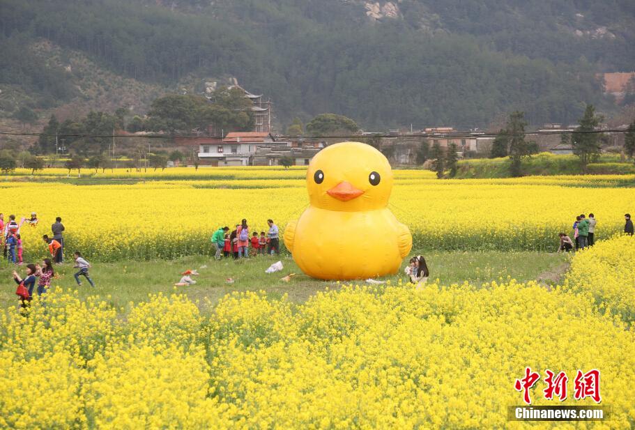 Yellow rubber duck stands in field in E China's Jiangxi Province, March 21, 2015. (Photo: chinanews.com)