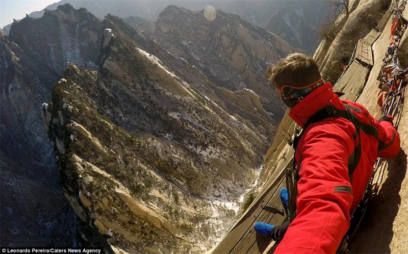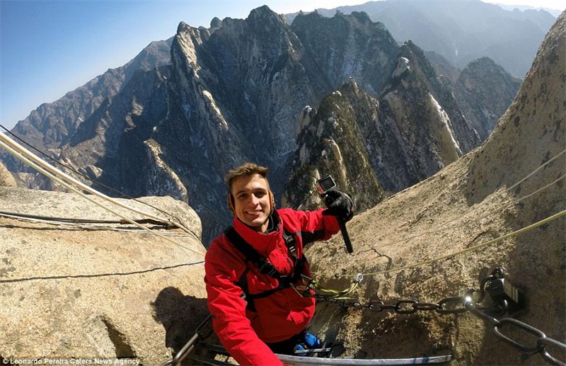 Leonardo, 23, said the extremely narrow plank walk is the most dangerous part of the trail and is two-way traffic the entire way
