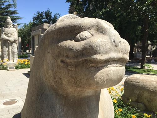 A soldier sculpture made in Yuan Dynasty to guard tomb has an exaggerated facial expression. (Photo by Ruan Yiqin)