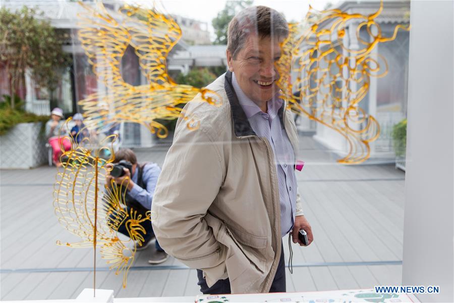 A man visits a Chinese temple fair in Moscow, Russia, July 17, 2017. The 4-day Chinese temple fair opened here on July 15. (Xinhua/Bai Xueqi)