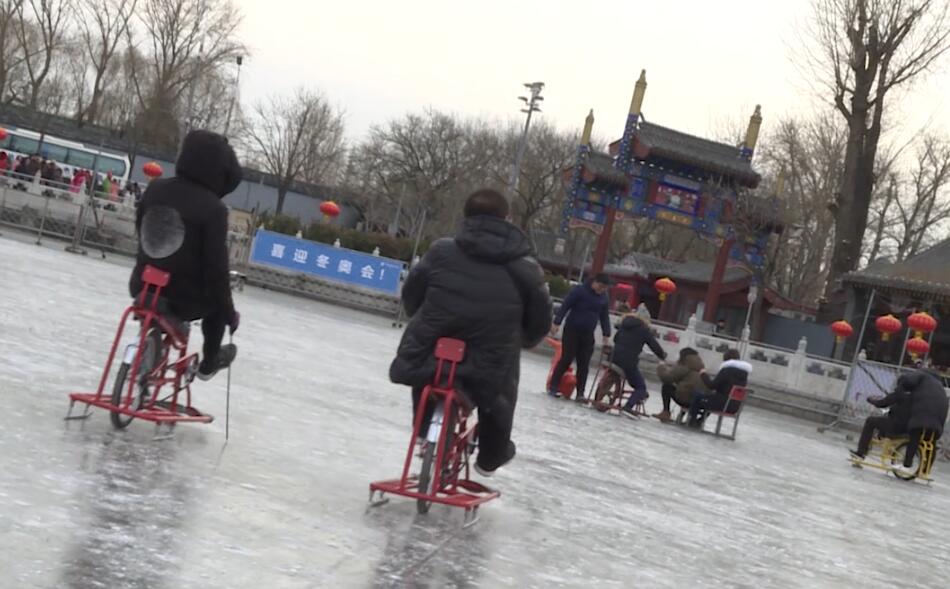Skating on ice-bikes. (People's Daily Online/Liu Ning)