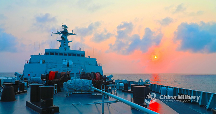 Warship attached to a naval landing ship flotilla under the PLA Southern Theater Commandsails on the sea duringa maritime training exercise on March 27, 2021. (eng.chinamil.com.cn/Photo by Qiao Chenxi)