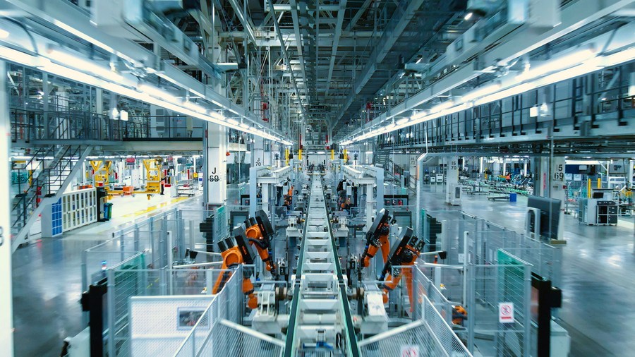 Photo taken on Dec. 21, 2021 shows the inside of the new Tiexi Plant of BMW Brilliance Automotive (BBA) in Shenyang, northeast China's Liaoning Province. (Xinhua)