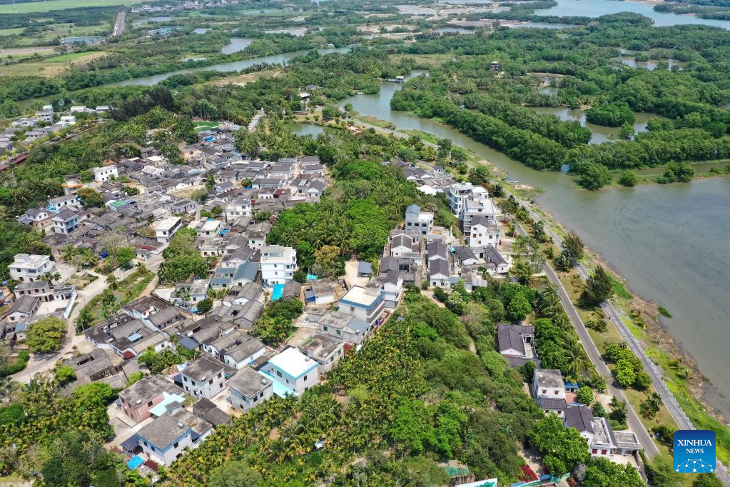 This aerial photo taken on March 24, 2023 shows a view of Nanqiang Village in Boao, south China's Hainan Province. The Boao Forum for Asia will hold its annual conference from March 28 to 31 in Boao, a coastal town in China's island province of Hainan. With constant efforts of local government in recent years to build "beautiful villages" in this town, Shamei, Mocun and Nanqiang villages have gradually become models of harmonious villages here. (Xinhua/Guo Cheng)