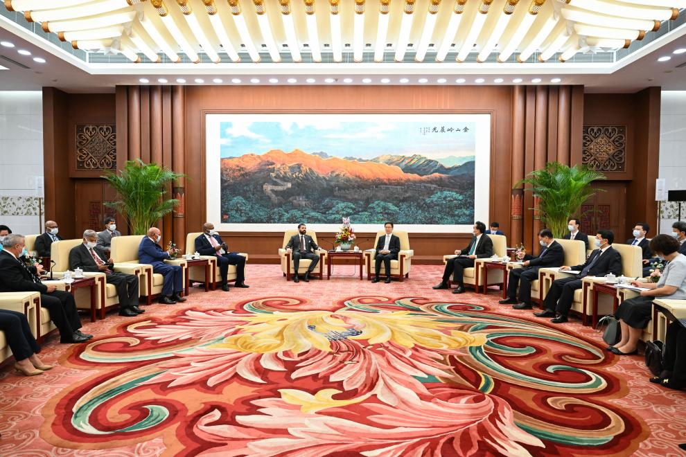 Chinese Vice President Han Zheng meets with foreign attendees of the first high-level conference of the Forum on Global Action for Shared Development in Beijing, capital of China, July 11, 2023. (Xinhua/Rao Aimin)