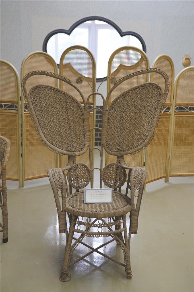 Photo shows a rattan woven chair made by Chen Liangshun, a provincial-level inheritor of rattan weaving in Hanzhong city in northwest China's Shaanxi Province, in the 1970s. (Shaanxi Daily/Liu Qianyu)