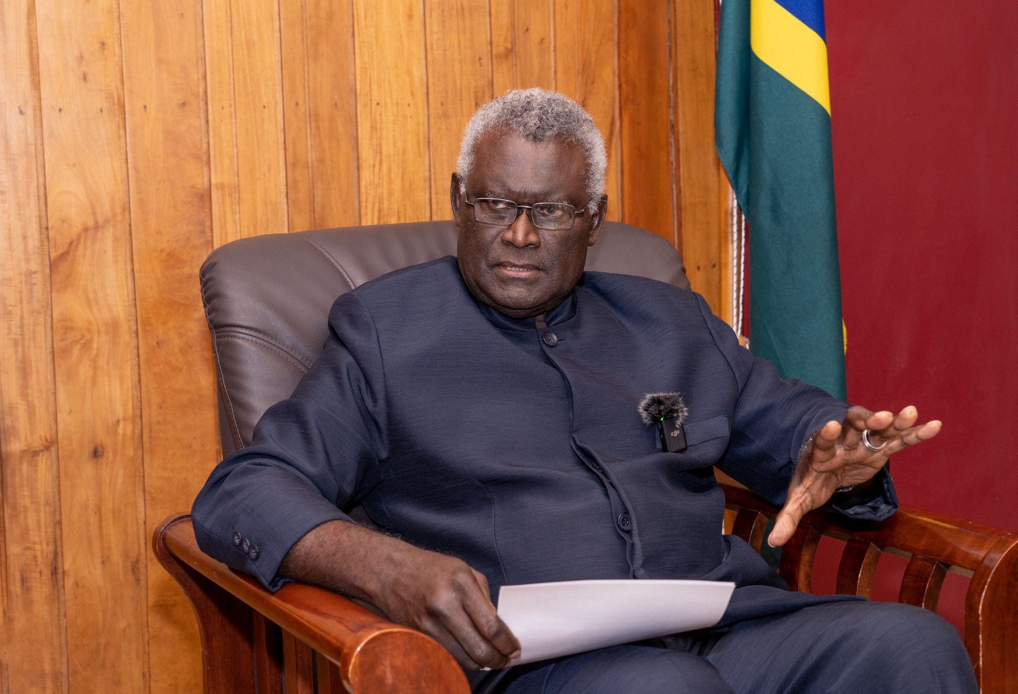Solomon Islands Prime Minister Manasseh Sogavare speaks with People’s Daily Online reporter in an exclusive interview in Honiara, capital of Solomon Islands, on Sept. 14, 2023. (Photo/Ji He)