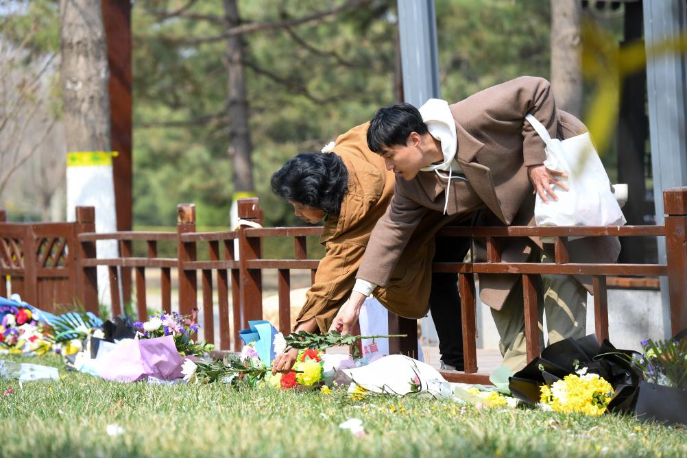 People lay flowers to mourn the deceased at a cemetery in Beijing, capital of China, April 2, 2024. (Xinhua/Ju Huanzong)