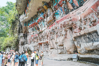 Tourists visit the scenic spot of Dazu Rock Carvings in Dazu district, southwest China's Chongqing Municipality. (Xinhua/Wang Quanchao)