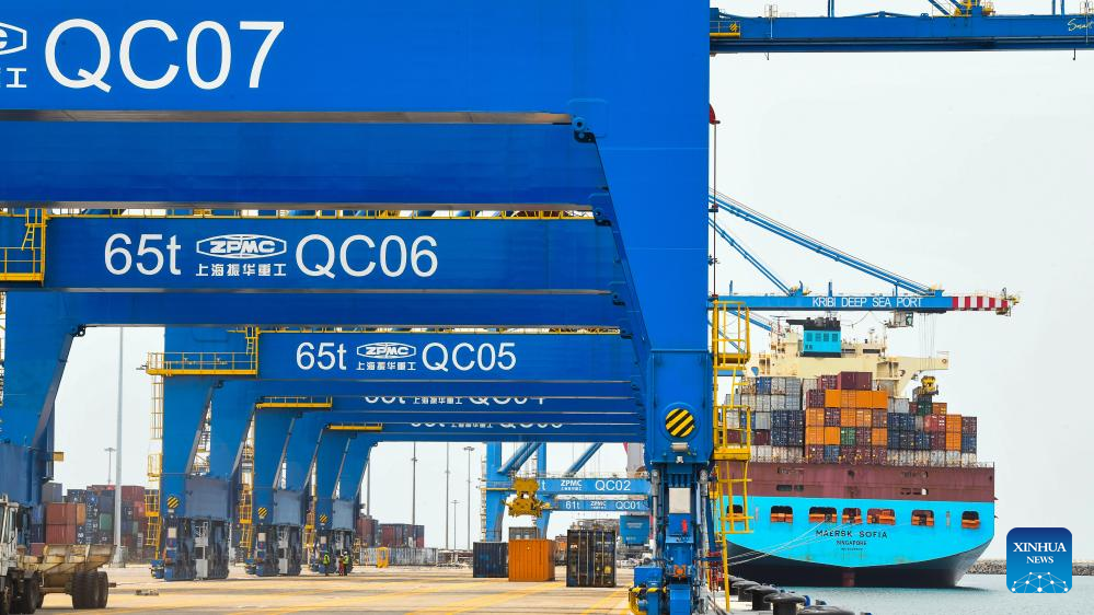 Photo taken on Feb. 21, 2025 shows a view of the second phase of the Kribi Deep Seaport in Kribi, southern Cameroon. China Harbor Engineering Company (CHEC) on Friday handed over the second phase of the Kribi Deep Seaport to authorities in southern Cameroon. (Xinhua/Kepseu)