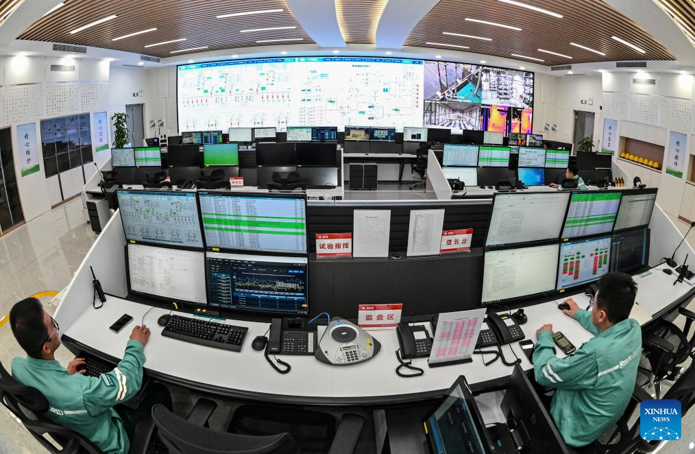 Operation and maintenance personnel monitor the operation of equipment in the main control room of the Zhongning converter station, the sending end of the Ningxia-Hunan ±800 kV ultra-high voltage (UHV) direct current transmission project in Zhongwei City, northwest China's Ningxia Hui Autonomous Region, Aug. 20, 2025. The Ningxia-Hunan ±800 kV UHV direct current transmission project, which brings electricity from northwest China's Ningxia Hui Autonomous Region to central China's Hunan Province, was put into operation for power transmission on Wednesday.