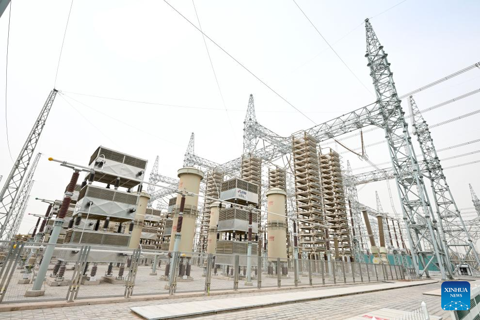 This photo taken on Aug. 20, 2025 shows the pole I low-end converter transformer yard at the Zhongning converter station, the sending end of the Ningxia-Hunan ±800 kV ultra-high voltage (UHV) direct current transmission project in Zhongwei City, northwest China's Ningxia Hui Autonomous Region. The Ningxia-Hunan ±800 kV UHV direct current transmission project, which brings electricity from northwest China's Ningxia Hui Autonomous Region to central China's Hunan Province, was put into operation for power transmission on Wednesday.