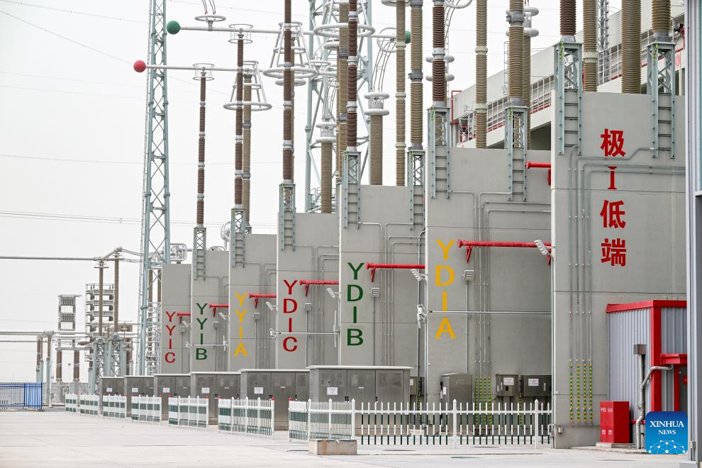 Starting from the Zhongning converter station in Ningxia's Zhongwei City, the project passes through Gansu, Shaanxi, Chongqing and Hubei provinces and municipality, and ends at the Hengyang converter station in central China's Hunan Province, with a total length of 1,616 kilometers and a rated capacity of 8 million kilowatts. (Xinhua/Feng Kaihua)