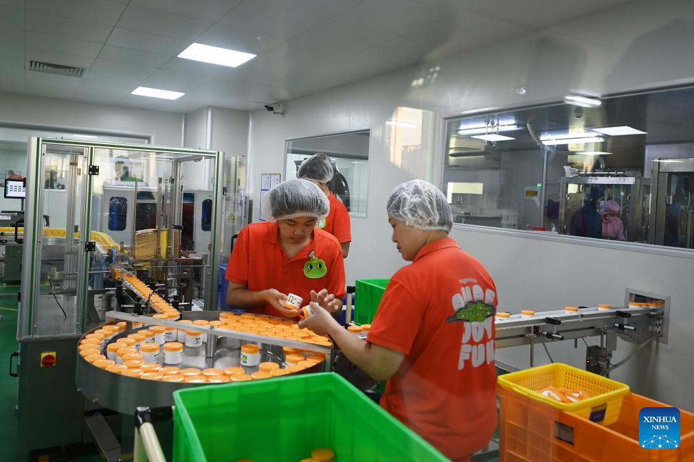 This photo taken on Aug. 19, 2025 shows a production line at the smart workshop of Panpan Foods in Jinjiang, southeast China's Fujian Province. (Xinhua/Xiao Xiao)