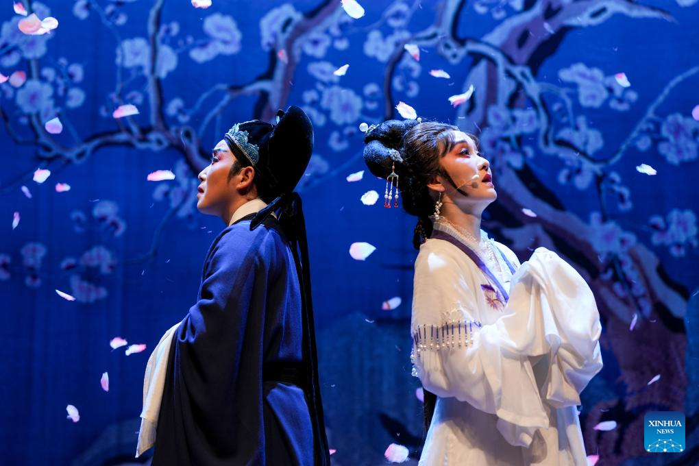 The Xiaobaihua Yue Opera Troupe from east China's Zhejiang Province presented a special program featuring excerpts from the Chinese classics "The Butterfly Lovers" and "The Garden of Love." Over two nights, the performances attracted more than 800 audience members.