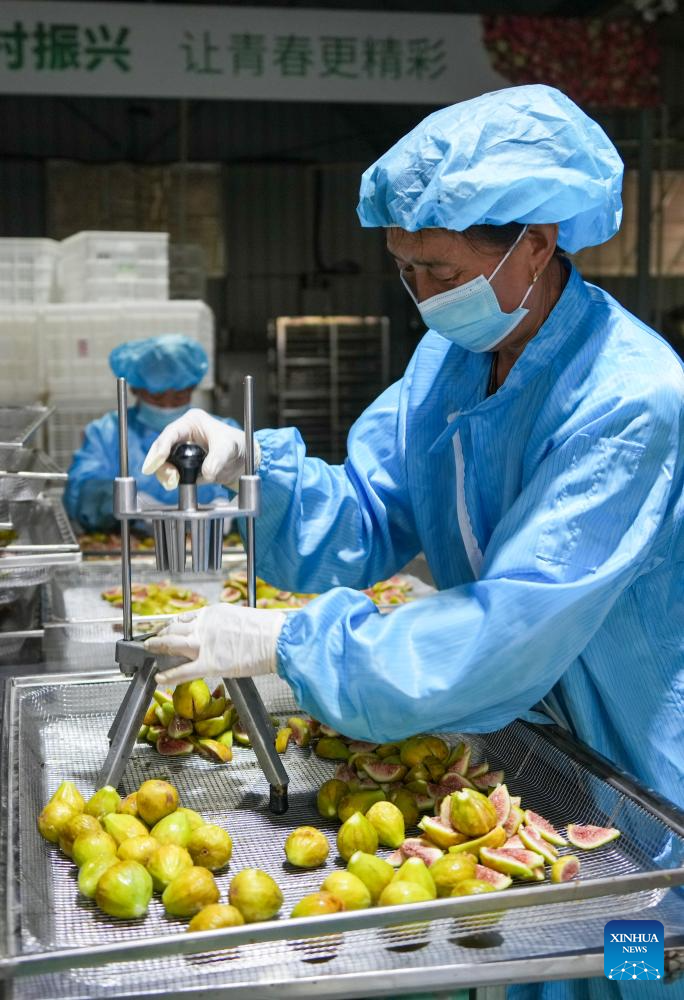A staff member of a food processing enterprise manufactures dried figs in Xintai City of east China's Shandong Province, Aug. 24, 2025. Figs in Xintai City have entered harvest season recently. (Xinhua/Xu Suhui)