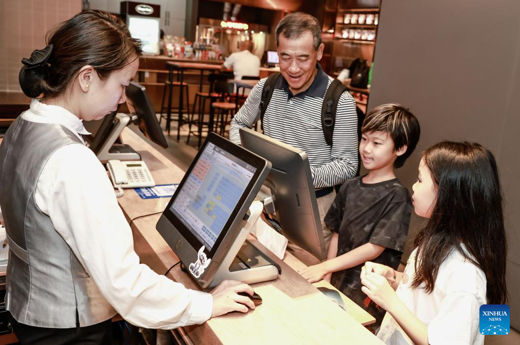 Audience buy tickets for "Nobody," a spinoff from the acclaimed "Yao-Chinese Folktales" animation series, at a cinema in Wuhan, central China's Hubei Province, Aug. 25, 2025. China's summer box office revenue has surpassed 11 billion yuan (about 1.5 billion U.S. dollars) as of Sunday, with homegrown titles dominating the season's top earners. (Photo by Zhao Jun/Xinhua)