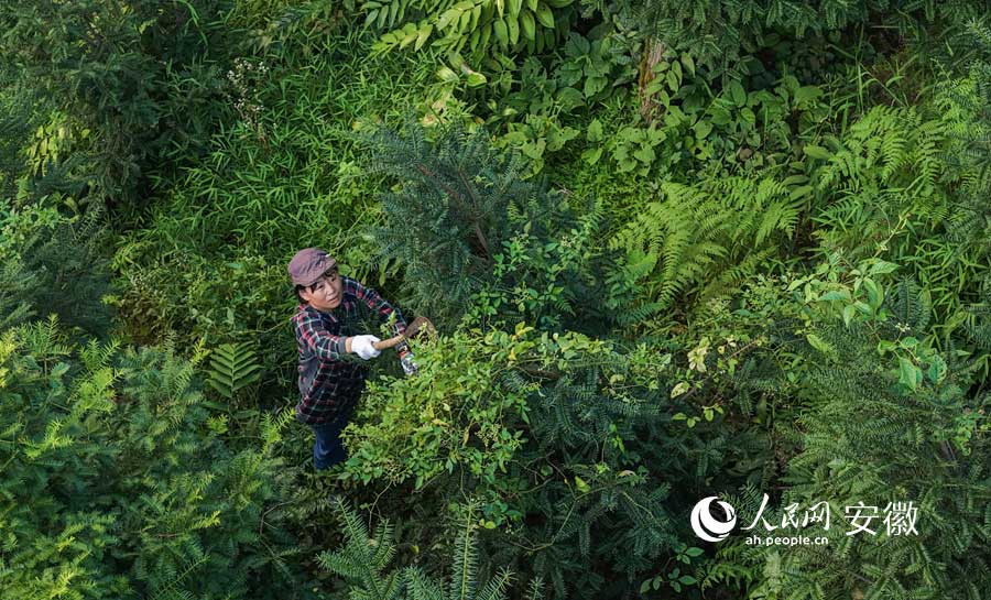 A woman works in the Torreya grandis forests of Gaojia village, Baidi town, Jingde county, Xuancheng city, east China's Anhui Province. (People's Daily Online/Zhang Jun)