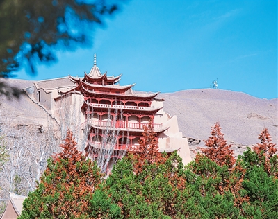 Photo shows the Mogao Grottoes, a UNESCO World Heritage site in Dunhuang, northwest China's Gansu Province. (Photo/Wang Binyin)