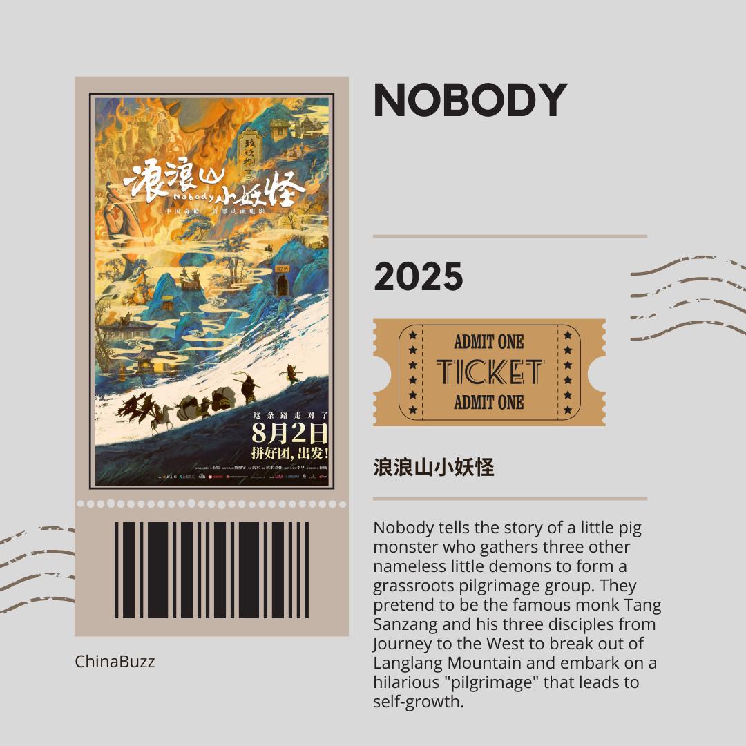 "Nobody," a Chinese animated film, has become a dark horse in this summer's box office. The animation movie has grossed 1.36 billion on Aug.29, smashing the record for Chinese-made 2D animated films, previously held by "Big Fish & Begonia," according to ticketing platform Beacon.