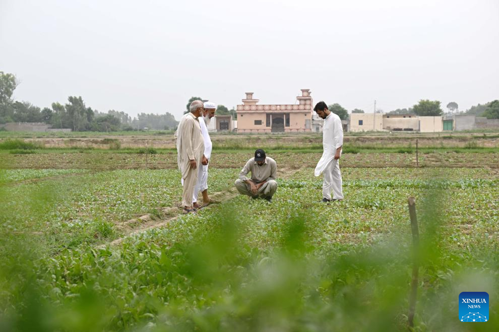 Farmers check on the growth of Chinese cauliflowers in Attock district of Pakistan's eastern Punjab province on Aug. 13, 2025. In recent years, Tianjin's cauliflower seed exports to Pakistan have accounted for over 70 percent of Pakistan's annual planting, helping to address bottlenecks in the local cauliflower industry.