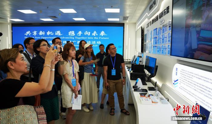 Journalists participating in the event "Sharing New Opportunities, Advancing Together into the Future–Guangxi in the Eyes of International Media" take photos in the China-ASEAN Artificial Intelligence Collaborative Innovation Center in Nanning, capital of south China's Guangxi Zhuang Autonomous Region on Aug. 27, 2025. (Chinanews.com/Huang Yanmei)