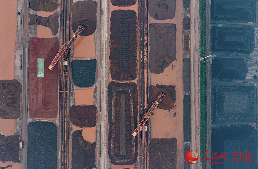 Photo shows the ore terminal in the Jingtang port area of Tangshan Port, Hebei Port Group, Tangshan, north China's Hebei Province. (People's Daily Online/Li Zhaomin)