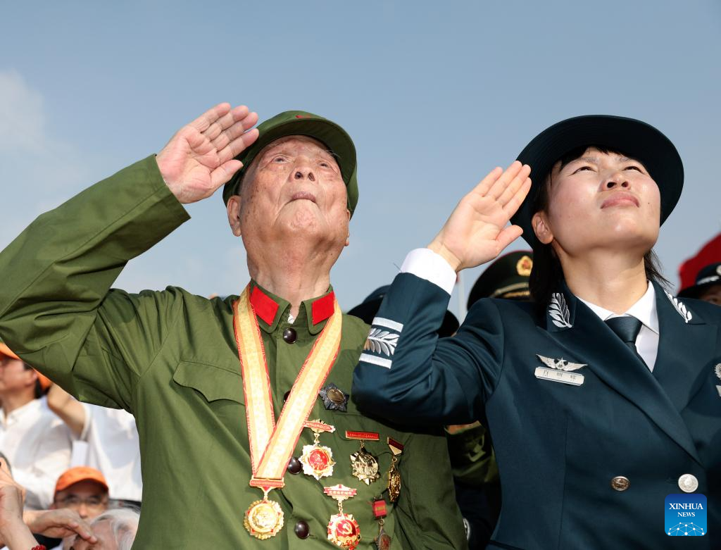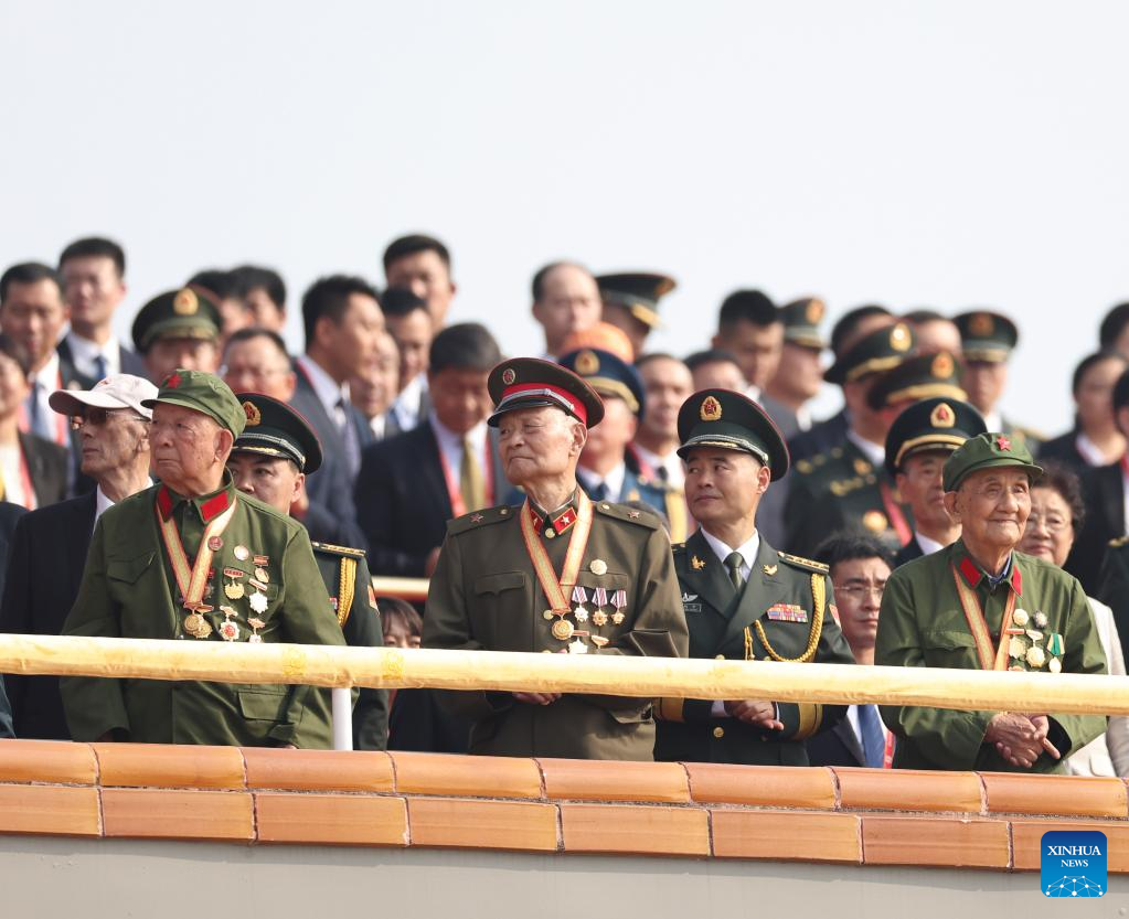 Guests attend a grand gathering to commemorate the 80th anniversary of the victory in the Chinese People's War of Resistance against Japanese Aggression and the World Anti-Fascist War in Beijing, capital of China, Sept. 3, 2025. (Xinhua/Li Ming)