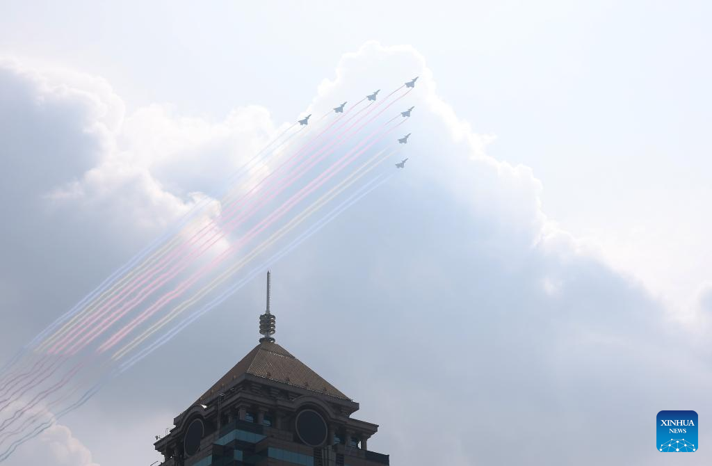 The echelon of trainer aircraft attends a military parade in Beijing, capital of China, Sept. 3, 2025. China on Wednesday held a grand gathering to commemorate the 80th anniversary of the victory in the Chinese People's War of Resistance against Japanese Aggression and the World Anti-Fascist War. (Xinhua/Tang Rufeng)