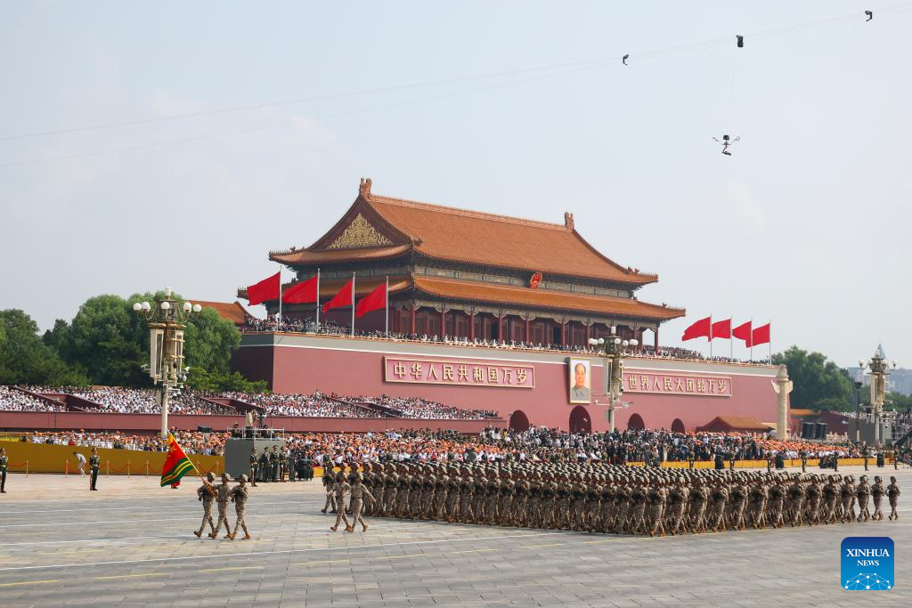 The Information Support Force formation attends a military parade in Beijing, capital of China, Sept. 3, 2025. China on Wednesday held a grand gathering to commemorate the 80th anniversary of the victory in the Chinese People's War of Resistance against Japanese Aggression and the World Anti-Fascist War. (Xinhua/Wang Jianhua)