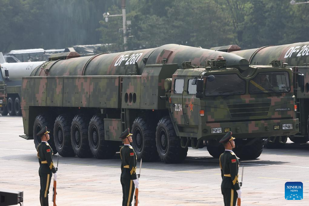 The hypersonic missile formation attends a military parade in Beijing, capital of China, Sept. 3, 2025. China on Wednesday held a grand gathering to commemorate the 80th anniversary of the victory in the Chinese People's War of Resistance against Japanese Aggression and the World Anti-Fascist War. (Xinhua/Pan Yulong)