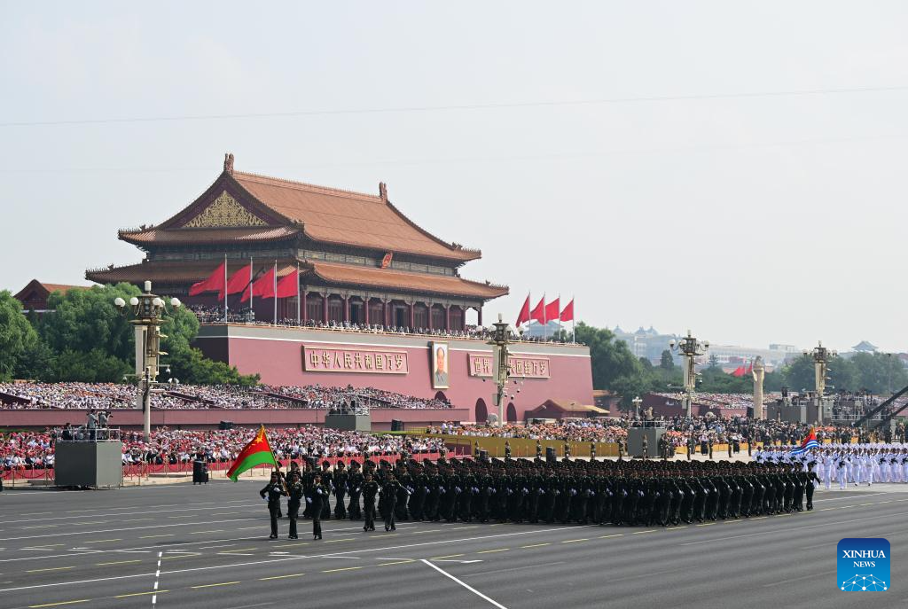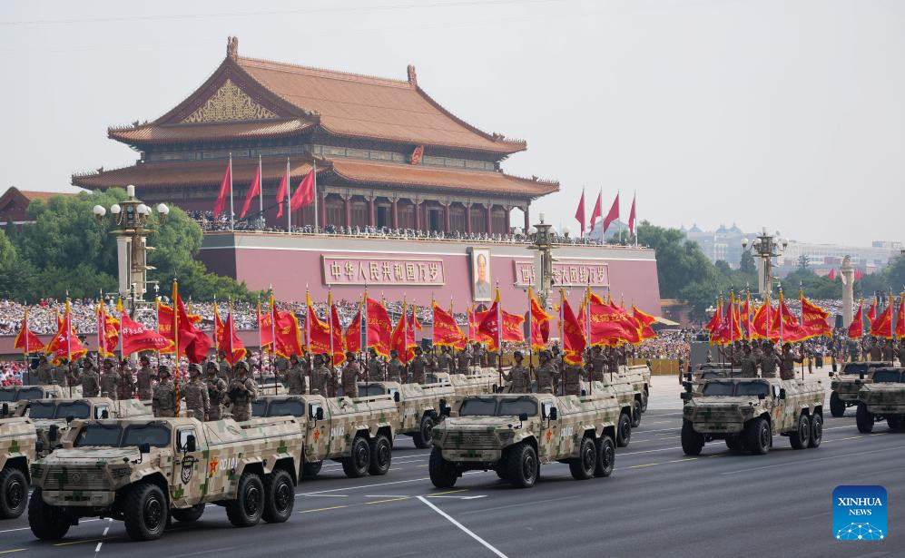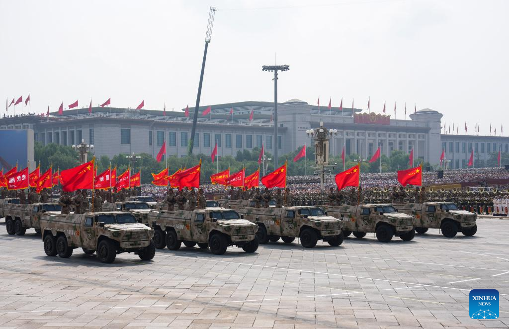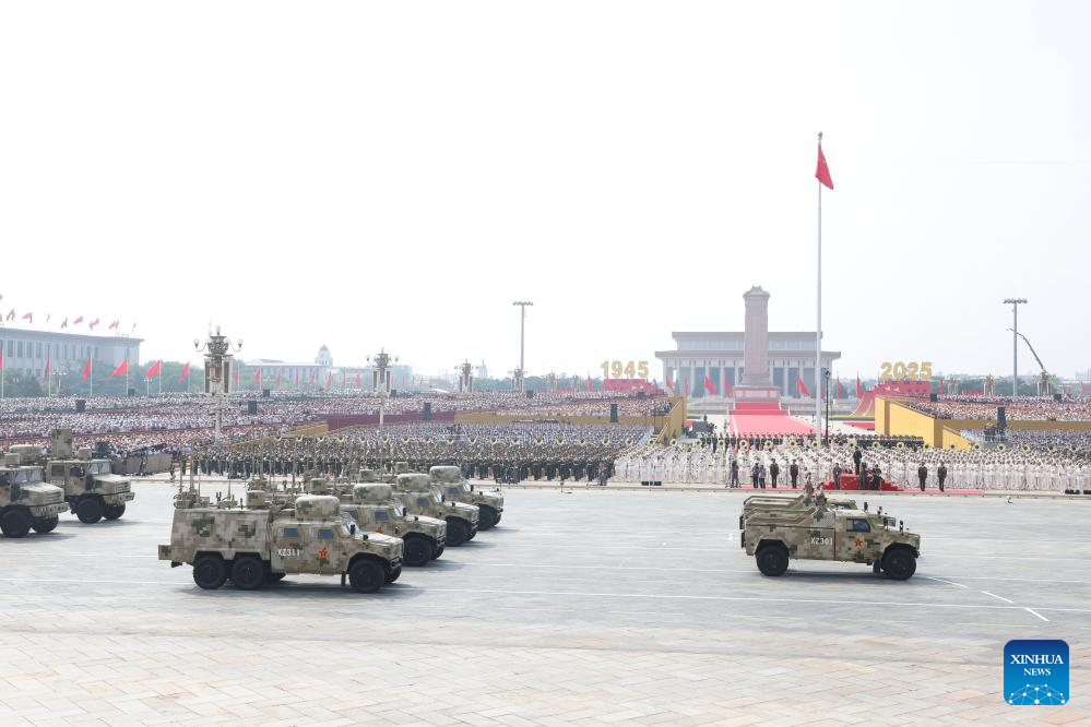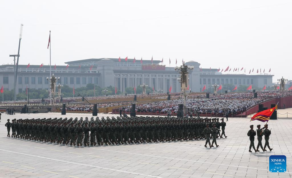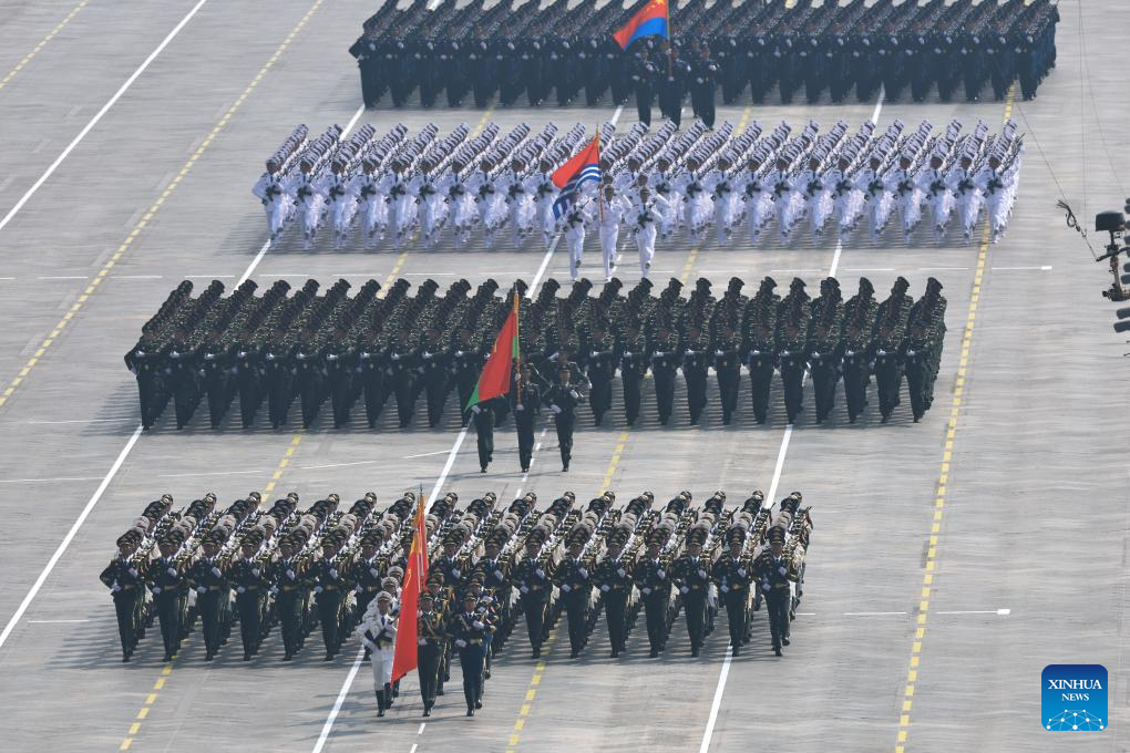 Foot formations attend a military parade in Beijing, capital of China, Sept. 3, 2025. China on Wednesday held a grand gathering to commemorate the 80th anniversary of the victory in the Chinese People's War of Resistance against Japanese Aggression and the World Anti-Fascist War. (Xinhua/Xiong Qi)