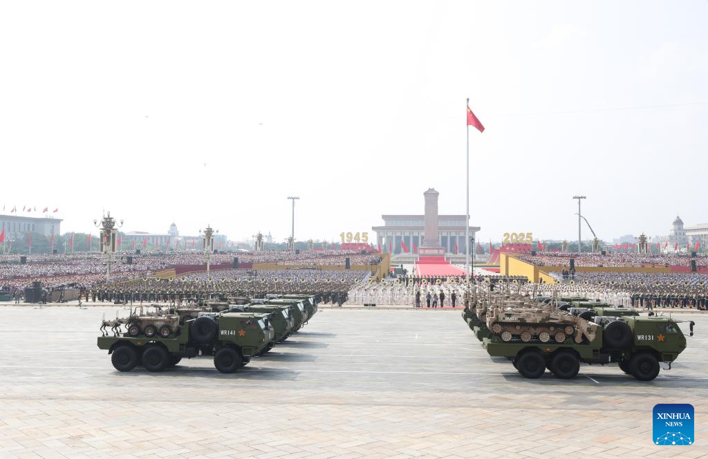 The long-range artillery formation attends a military parade in Beijing, capital of China, Sept. 3, 2025. China on Wednesday held a grand gathering to commemorate the 80th anniversary of the victory in the Chinese People's War of Resistance against Japanese Aggression and the World Anti-Fascist War. (Xinhua/Xiong Qi)