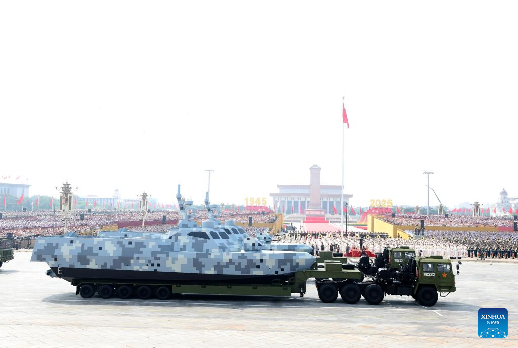 The sea-based unmanned warfare formation attends a military parade in Beijing, capital of China, Sept. 3, 2025. China on Wednesday held a grand gathering to commemorate the 80th anniversary of the victory in the Chinese People's War of Resistance against Japanese Aggression and the World Anti-Fascist War. (Xinhua/Chen Bin)