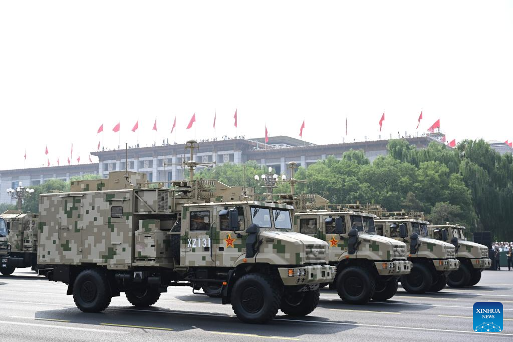 The cyberspace warfare formation attends a military parade in Beijing, capital of China, Sept. 3, 2025. China on Wednesday held a grand gathering to commemorate the 80th anniversary of the victory in the Chinese People's War of Resistance against Japanese Aggression and the World Anti-Fascist War. (Xinhua/Yang Guanyu)