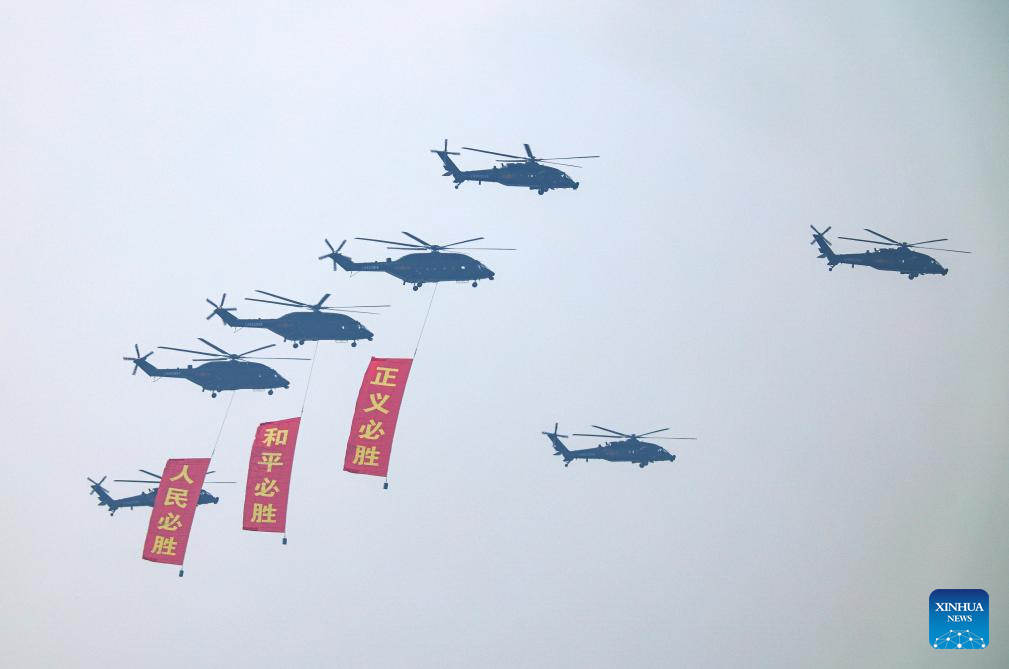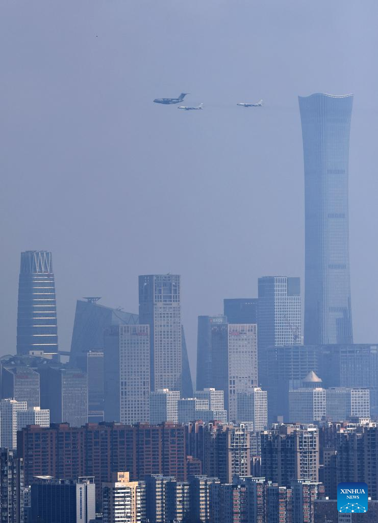 The flag-guarding air echelon attends a military parade in Beijing, capital of China, Sept. 3, 2025. China on Wednesday held a grand gathering to commemorate the 80th anniversary of the victory in the Chinese People's War of Resistance against Japanese Aggression and the World Anti-Fascist War. (Xinhua/Wang Jingqiang)