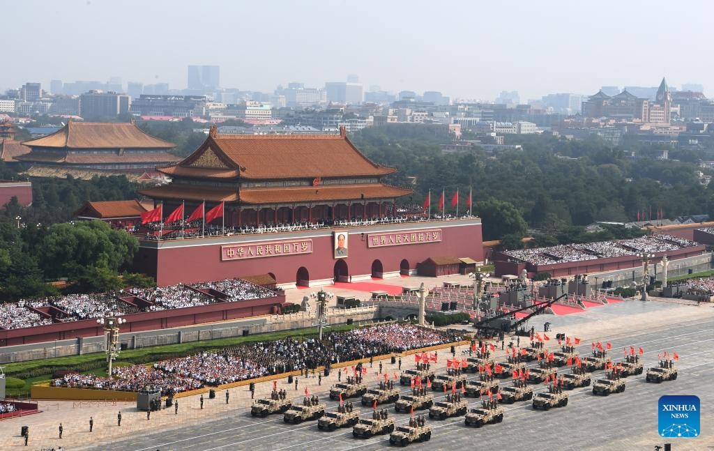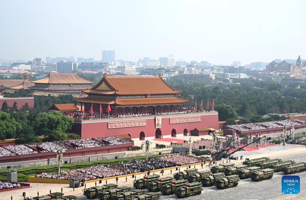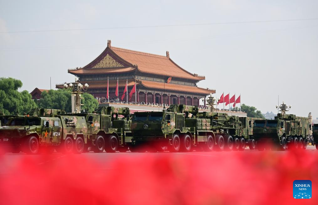 The air defense weapons formation attends a military parade in Beijing, capital of China, Sept. 3, 2025. China on Wednesday held a grand gathering to commemorate the 80th anniversary of the victory in the Chinese People's War of Resistance against Japanese Aggression and the World Anti-Fascist War. (Xinhua/Li Xiang)