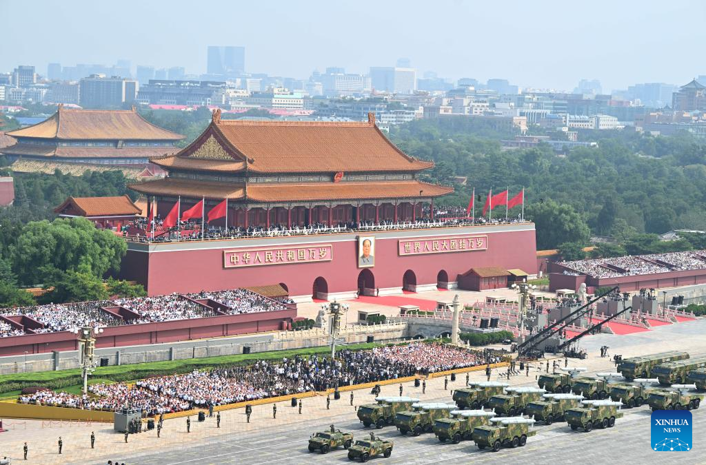 The armament support formation attends a military parade in Beijing, capital of China, Sept. 3, 2025. China on Wednesday held a grand gathering to commemorate the 80th anniversary of the victory in the Chinese People's War of Resistance against Japanese Aggression and the World Anti-Fascist War. (Xinhua/Zhang Long)