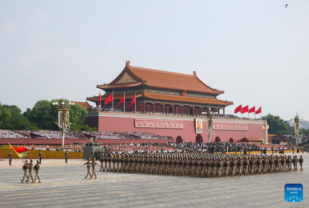 The People's Liberation Army (PLA) Cyberspace Force formation attends a military parade in Beijing, capital of China, Sept. 3, 2025. China on Wednesday held a grand gathering to commemorate the 80th anniversary of the victory in the Chinese People's War of Resistance against Japanese Aggression and the World Anti-Fascist War. (Xinhua/Huang Wei)