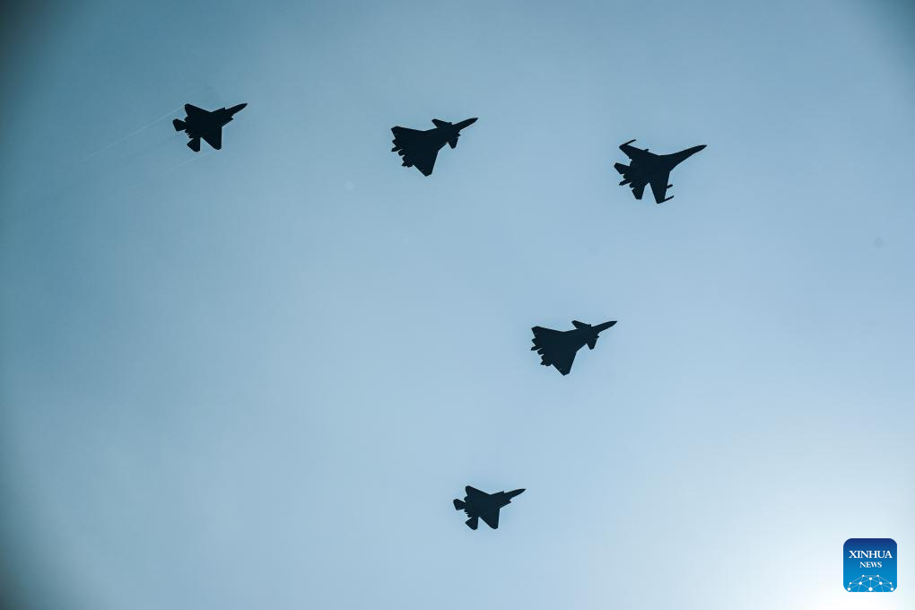 The fighter jets echelon attends a military parade in Beijing, capital of China, Sept. 3, 2025. China on Wednesday held a grand gathering to commemorate the 80th anniversary of the victory in the Chinese People's War of Resistance against Japanese Aggression and the World Anti-Fascist War. (Xinhua/Zhang Hongxiang)