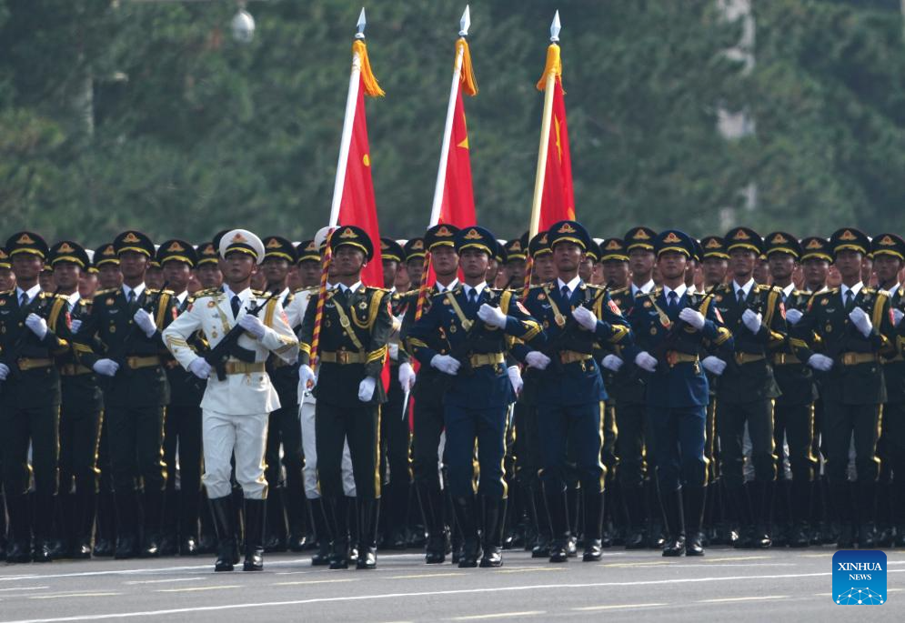 The guard of honor of the Chinese People's Liberation Army (PLA) attends a parade in Beijing, capital of China, Sept. 3, 2025. China on Wednesday held a grand gathering to commemorate the 80th anniversary of the victory in the Chinese People's War of Resistance against Japanese Aggression and the World Anti-Fascist War. (Xinhua/Wang Jianhua)