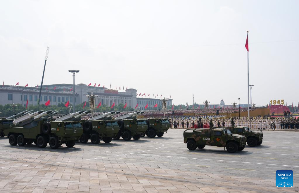 The anti-ship missile formation attends a military parade in Beijing, capital of China, Sept. 3, 2025. China on Wednesday held a grand gathering to commemorate the 80th anniversary of the victory in the Chinese People's War of Resistance against Japanese Aggression and the World Anti-Fascist War. (Xinhua/Ju Huanzong)