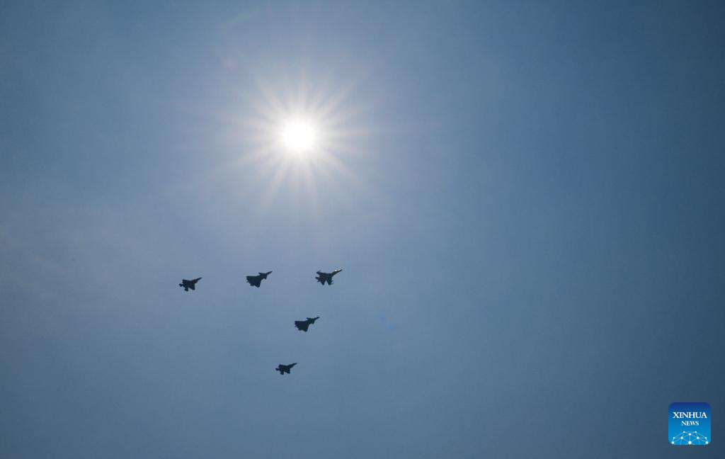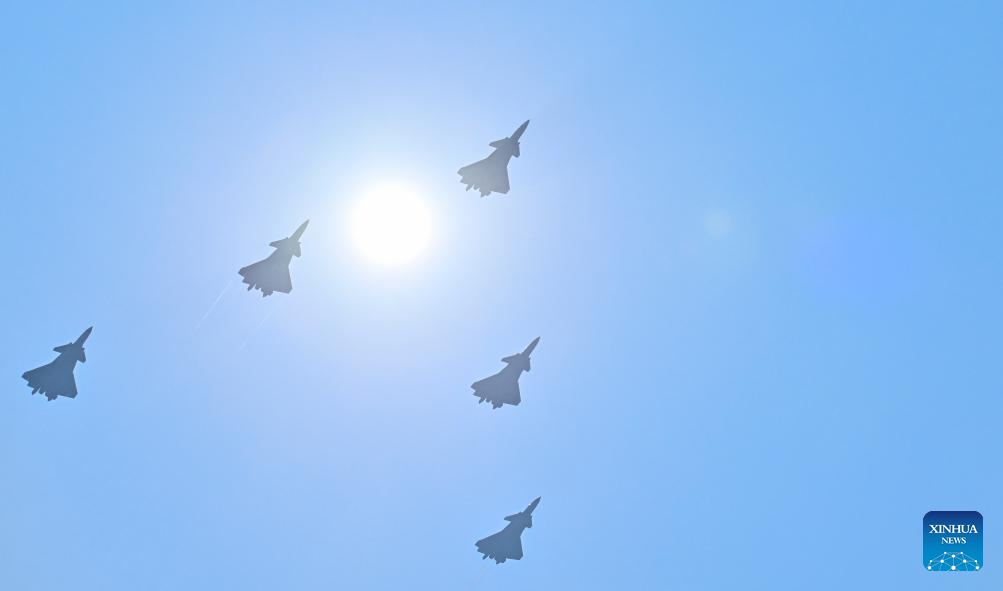 The fighter jets echelon attends a military parade in Beijing, capital of China, Sept. 3, 2025. China on Wednesday held a grand gathering to commemorate the 80th anniversary of the victory in the Chinese People's War of Resistance against Japanese Aggression and the World Anti-Fascist War. (Xinhua/Sun Ruibo)