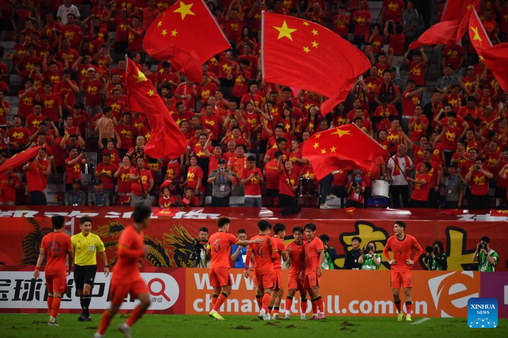 Supporters of team China celebrate victory after the AFC U23 Asian Cup Qualifiers Group D football match between China and Timor-Leste in Xi'an, northwest China's Shaanxi Province, Sept. 3, 2025. (Xinhua/Zou Jingyi)